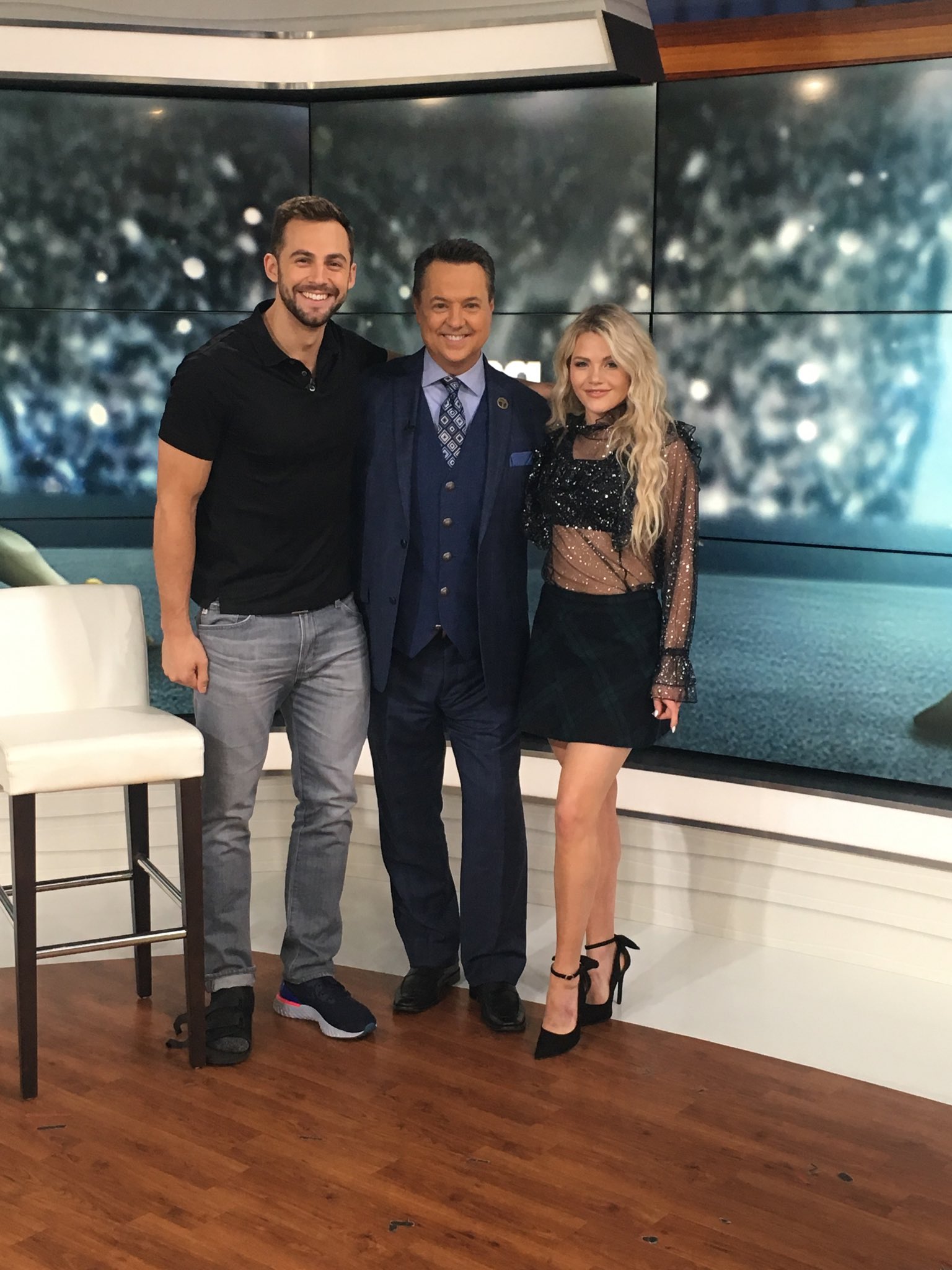 Notice anything? @mazdzer hurt his foot pretty bad during #DWTS rehearsal with @WitneyCarson yesterday. He says he essentially dropped a heavy table on it. However, Chris says he WILL be dancing--twice--on Monday night. They joined me on the news today.
