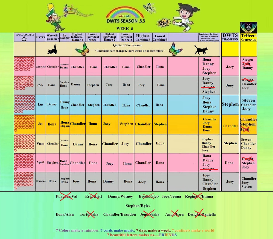 Well, I am going to pop out and work on the chart. It was a great night. Next Week Semi finals.