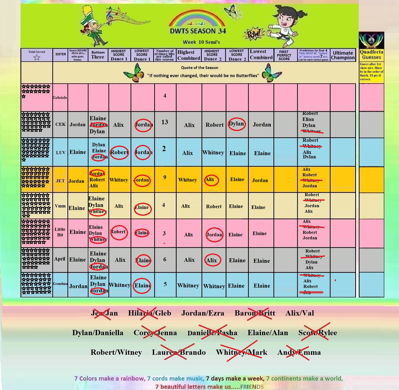 Safe............Elaine.......Alix......Robert.....Dylan