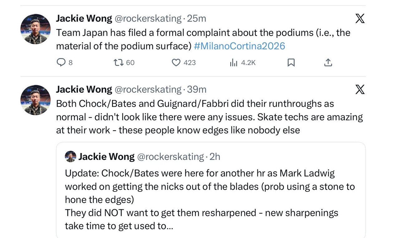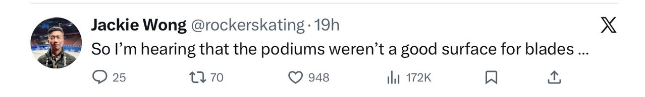 HOW HORRIBLE that the podium in the ice rink didn't have carpet or something to protect the blades of the skaters. This could be huge, if they can not get them repaired in time for the next events. UGH.....just crazy, when you think of it.