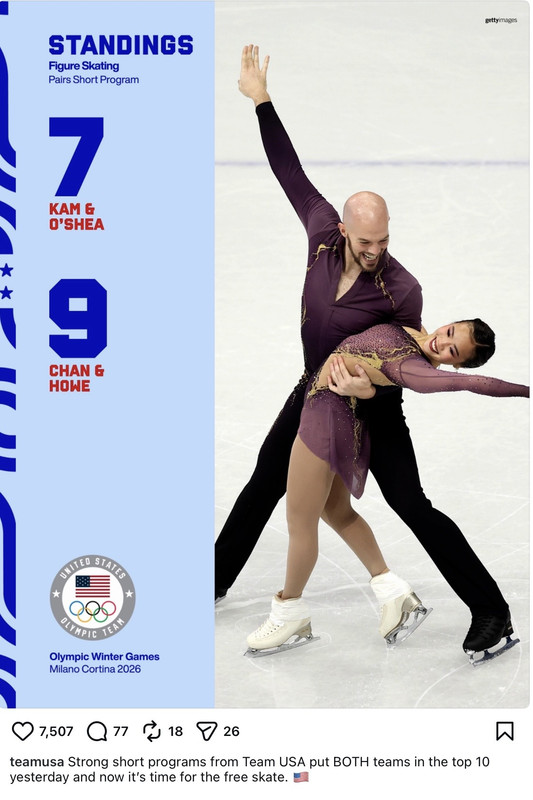 Oh, and did you see him sitting in the stands watching the Pairs competition? He was sitting between Donovan Carrillo of Mexico and Piper Gilles of Canada. He looked very relaxed, it was good to see.