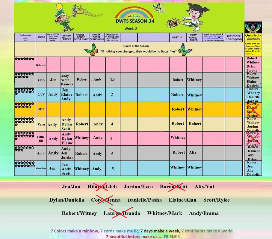 Luv, I sent my picks via email before the show. Not that it is an important, as they were mostly blanks! *lol*